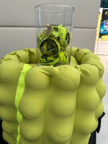 "Když se ohraný tenisový míček dostane na skládku, rozkládá se tam zhruba čtyři sta let. Jenže proč jej hned likvidovat, řekla si Veronika Fejtová a vytvořila sedací vak Acebag. Díky němu zvítězila ve čtvrtém ročníku eko-designérské soutěže Reborn Design 2025, která se zaměřuje na využití odpadu."